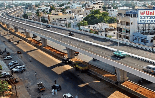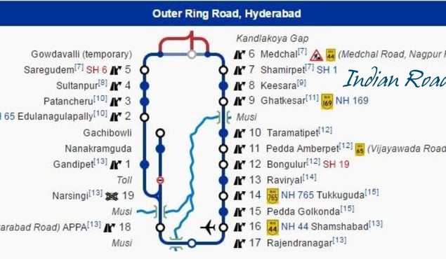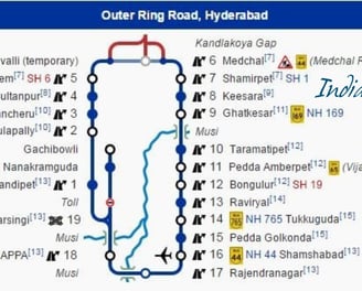 The Outer Ring Road (ORR) is a 158 km long 8-lane expressway that circles Hyderabad.